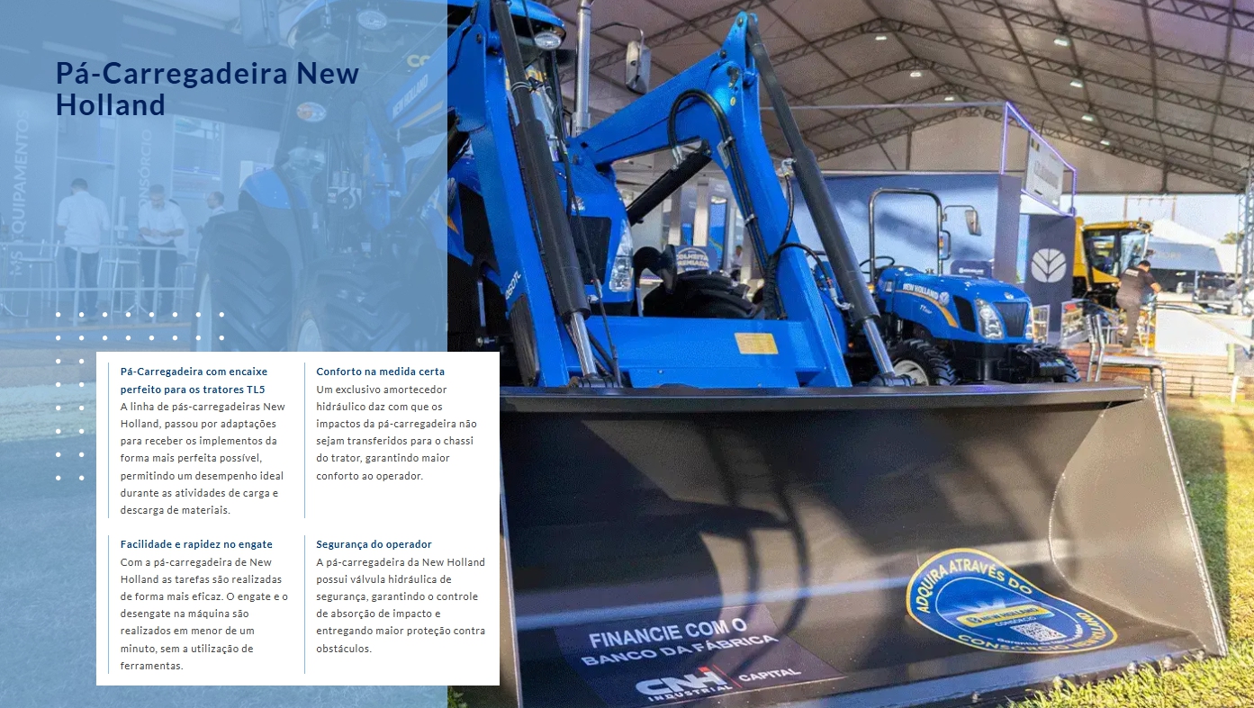 A Pá-Carregadeira da New Holland possui exclusivo amortecedor hidráulico. Isso significa que, ao realizar movimentos de carga e descarga ou ao operar em terrenos irregulares, o dispositivo hidráulico ajuda a reduzir o impacto transmitido à estrutura da máquina. Resultando em maior conforto para o operador e menor desgaste do equipamento.