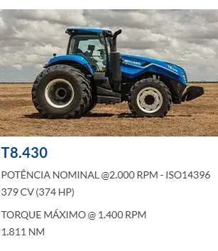 Ideais, principalmente, para o pequeno e o médio produtor pela sua força, agilidade e baixo consumo de combustível. Essas características fazem do trator New Holland uma máquina de excelente custo-benefício.