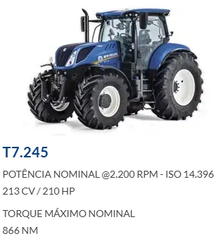 Os tratores da linha T7 são robustos e resistentes, ideais para todo o tipo de propriedade e produtor que busca economia e uma máquina agrícola forte e durável. Esses modelos garantem retorno do investimento e excelente desempenho.