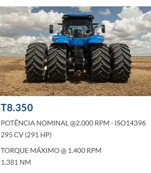 Adicionalmente, destaca-se a notável eficiência deste trator, especialmente em termos de potência, força e consumo. Graças ao motor eletrônico e ao sistema common rail, ele oferece precisamente o desempenho necessário para cada operação, mantendo sempre um controle rigoroso sobre o consumo de combustível.